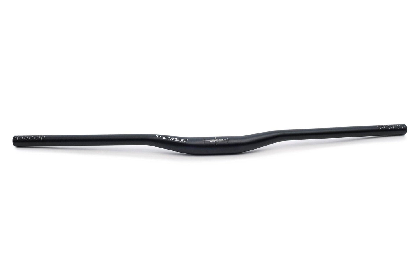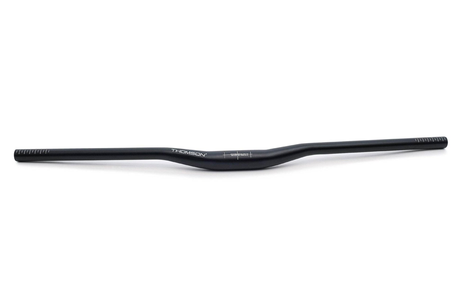The Thomson riser bar is 800mm wide with 20mm of rise, 9° of backsweep, and 5° of upsweep. It’s built using 7050 Aluminum alloy for strength and longevity. The long straight section in the middle reduces stress concentrations, especially when using wide Direct Mount stems.