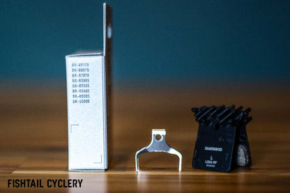 The SHIMANO L05A Resin Pad with Fin and Spring was made to be the successive resin brake pad replacing the older L03A. It is 40% more wear resistant than its predecessor L03A. Recommended for Dura Ace, Ultegra and 105 disc brake calipers.